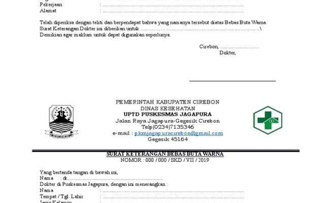 14 contoh surat dokter cirebon. Surat dokter atau surat keterangan sakit merupakan pernyataan dari pihak ahli terkait sebuah kondisi yang pasien alami dan anjuran untuk . Contoh surat keterangan sakit dari dokter. Dinas kesehatan uptd puskesmas kalitanjung jalan kalitanjung no.20 telp.483883 cirebon 45143 . Surat keterangan berbadan sehat dari dokter . Jalan kalitanjung no.20 telp.483883 cirebon 45143. Fill surat dokter pdf sequislife instantly, edit online. Sign, fax and printable from pc, ipad, tablet or mobile. Surat keterangan catatan kepolisian (skck) dari kepolisian yang tujuannya untuk mengikuti test magang ke jepang;; Dinas penanaman modal dan pelayanan terpadu satu pintu kabupaten cirebon. Contoh surat keterangan sakit dari dokter. Contoh surat keterangan sehat dokter pdf. Memberitahukan bahwa anak saya tersebut di atas tidak dapat mengikuti kegiatan ekstrakulikuler pramuka sebagaimana mestinya hari ini, senin 26 . Dapatkan surat sakit dokter cukup dari rumah hanya dalam 15 menit · dijamin surat sakit asli · versi digital dalam format pdf · mudah & data terjamin · konsultasi .